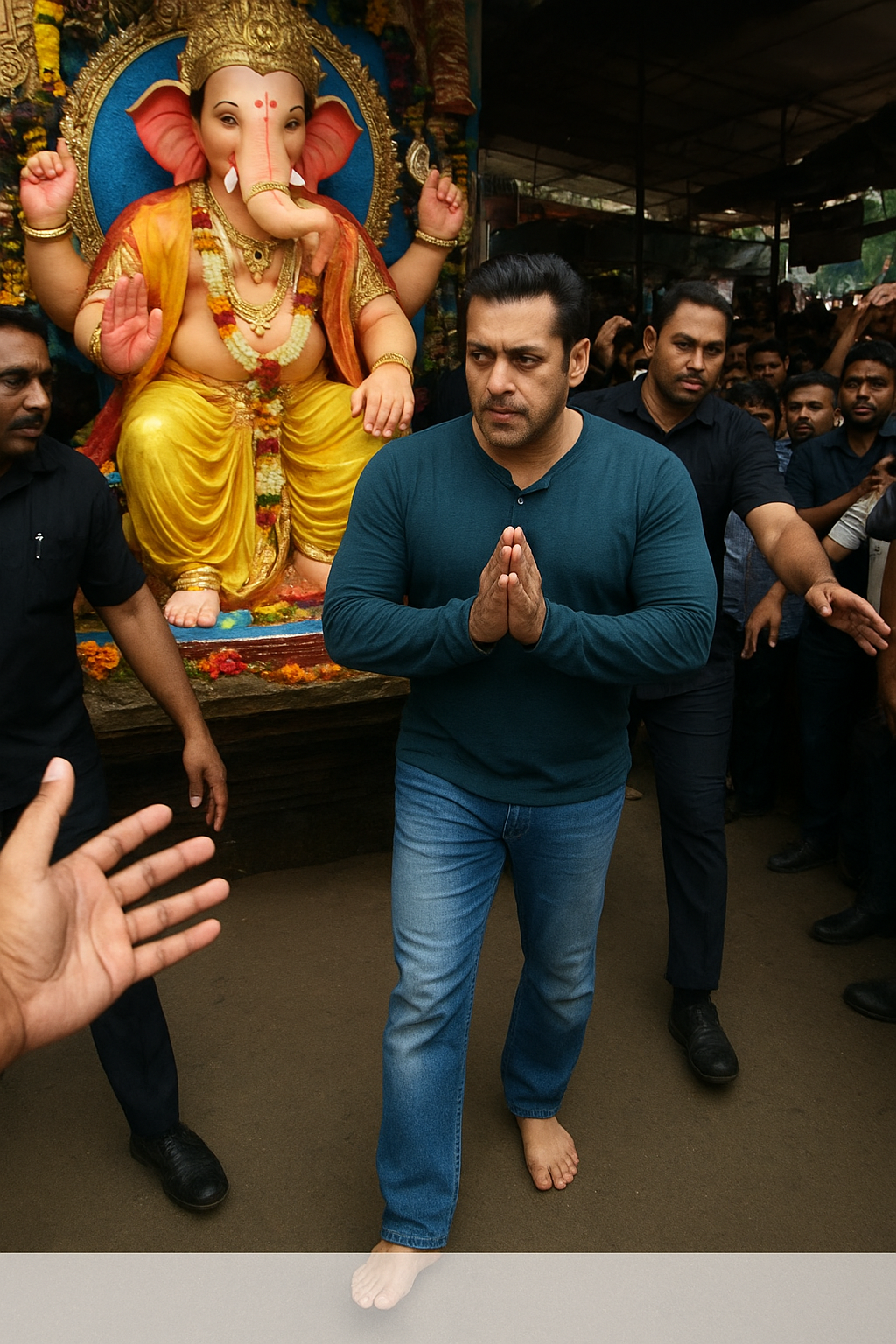 Bollywood superstar Salman Khan paid a heartfelt visit to Lord Ganesha during the Ganesh Chaturthi celebrations. The actor was seen walking barefoot as a mark of devotion while heading to the residence of a senior Maharashtra minister, where Ganpati darshan was arranged.